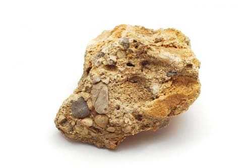 Conglomerate has a variable hardness, and it often looks like concrete. It is usually found in mostly thick, crudely stratified layers. Beds of conglomerate are often underground reservoirs of water and petroleum. Conglomerates are used in the construction industry as decorative stone.